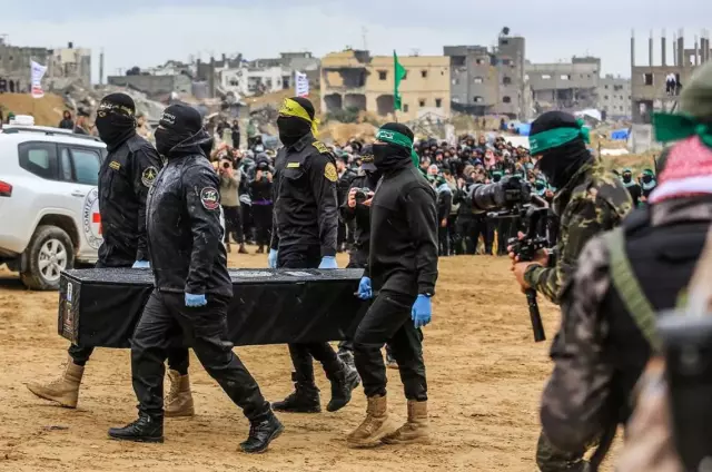 hamas trumpin aciklamalarindan sonra israilli esirlerin cenazelerini teslim etmeye basladi KFIGCMVg.jpg